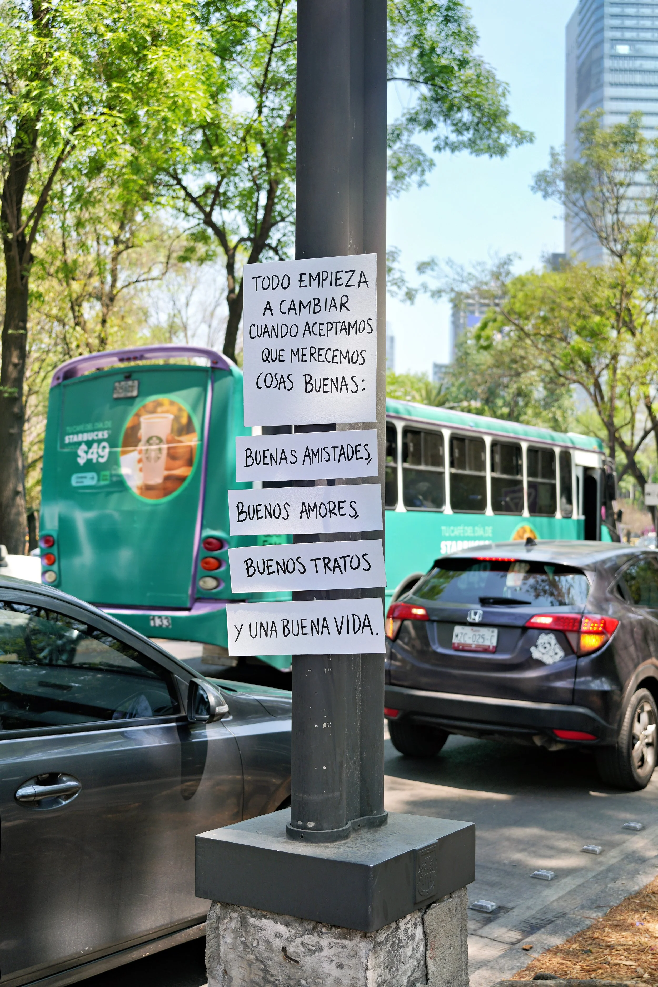Finally, here’s some words of wisdom found on a street lamp post! ‘All begins to change when we accept that we deserve good things: good friends, good love, good treatment and a good life’.