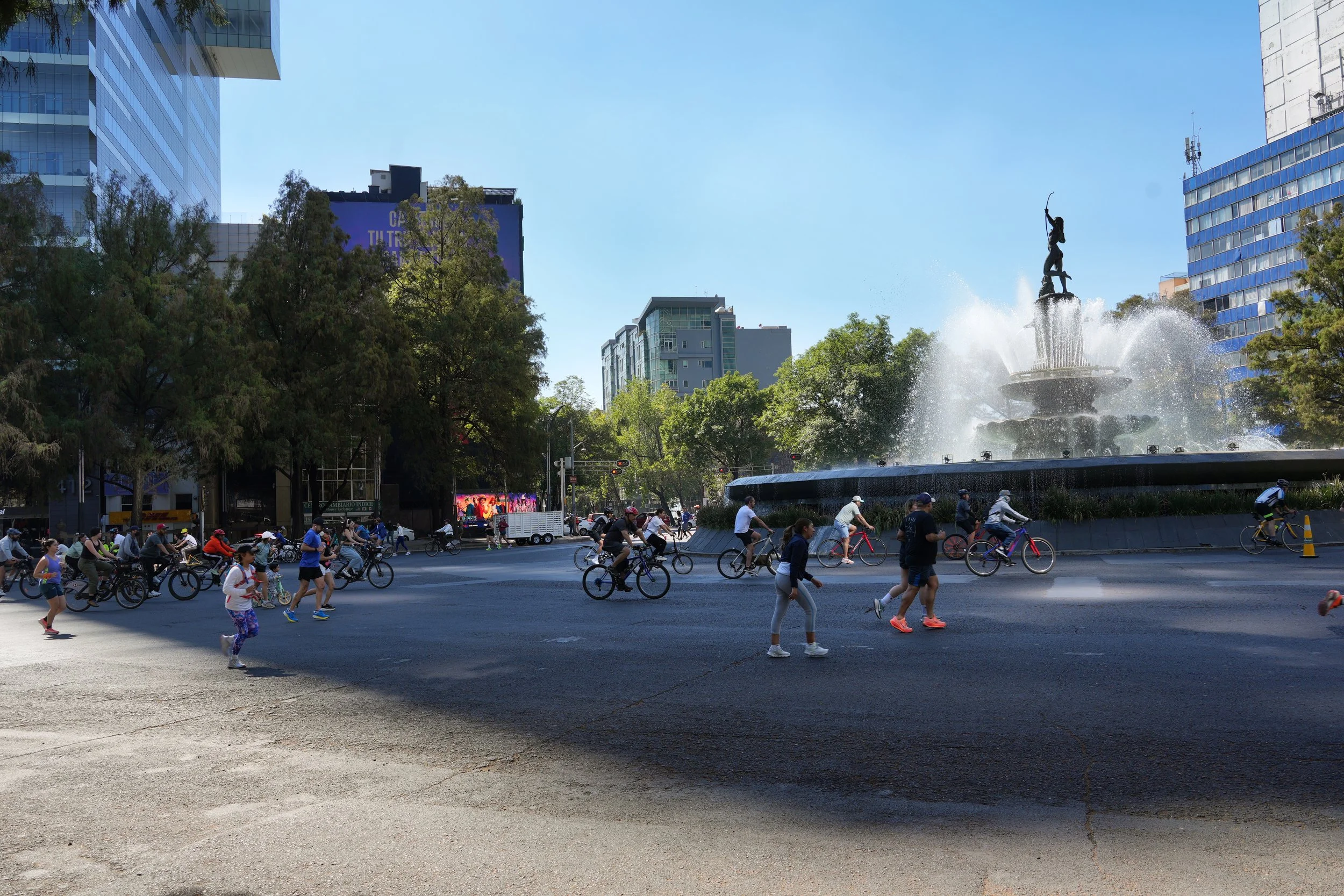 We began our trip with walk in the Reforma, which they close to traffic on weekends. Check out the photo below of runners and cyclists trekking the area by the lovely fountain right in the middle of the city.